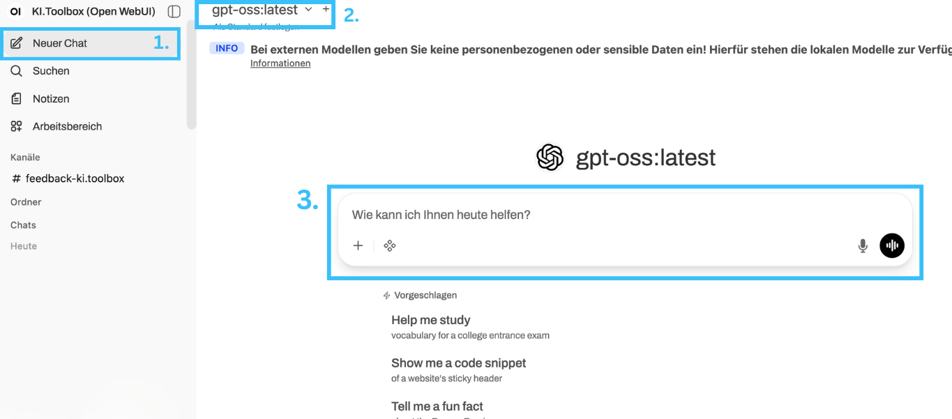 Im Eingabefenster können Sie direkt Ihren Chat mit einem der verfügbaren Sprachmodelle starten.