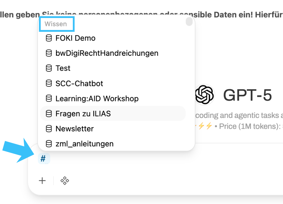 Auf das so angelegte Wissen können Sie im Chats direkt mit der Raute "#" verweisen, um die gespeicherten Daten abzurufen. Die KI kann dann bei der Bearbeitung von Anfragen darauf zugreifen.